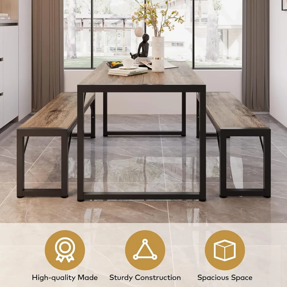 - Dining Table Set for 4: Kitchen table with bench includes a spacious table (45.5 x 30.4 x 30.1 inches) and two ergonomic benches (41.1 x 18.4 x 12.1 inches), comfortably seating four people. Each bench holds up to 550 lbs, while the table supports 330 lbs