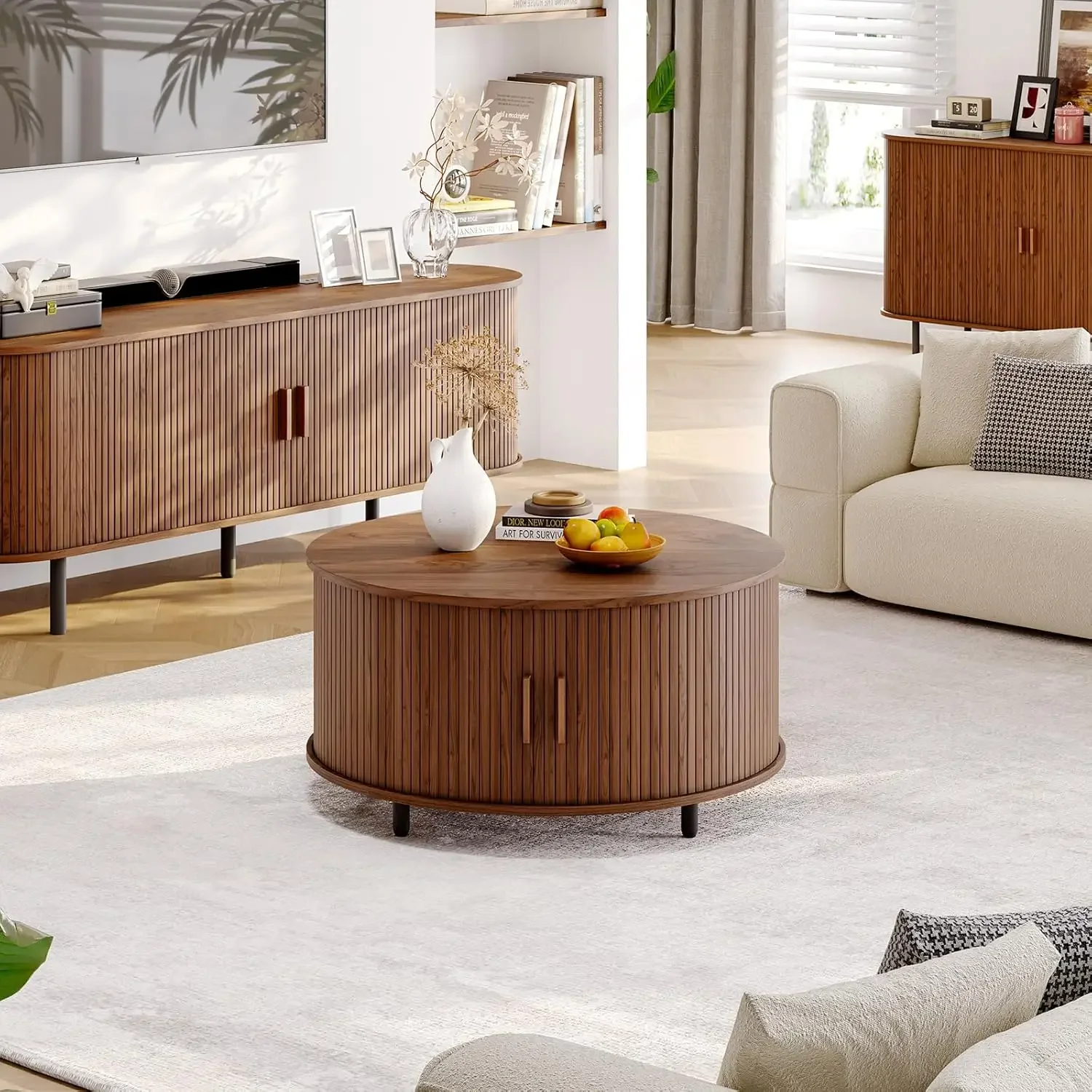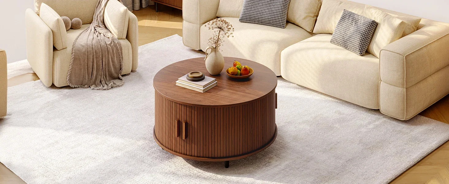 Mid-Century Modern 31.5" Round Coffee Table with Storage